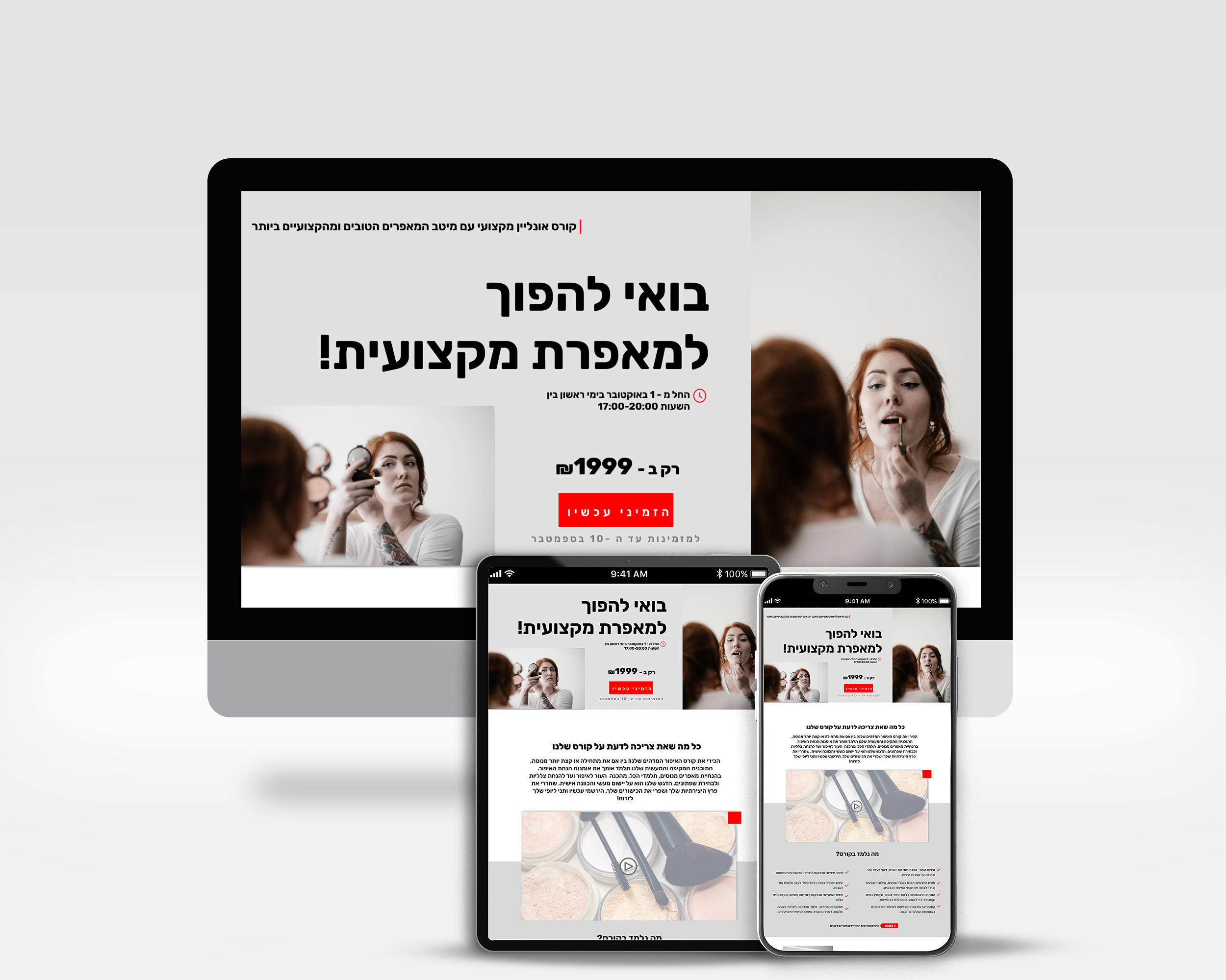 היום, עם שילוב של ידע, מקצועיות ויצירתיות – אני עוזרת לעסקים קטנים ובינוניים לעצב את הנראות החזותית שלהם בצורה מדויקת, מרשימה ומבדלת: מיתוג, עיצוב מודעות ומוצרי פרסום, אתרים ודפי נחיתה – הכל כדי לתת לעסק שלכם חיים, צבע ונוכחות.